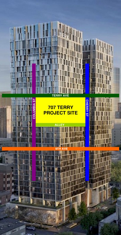 There will be 'No Parking' signs and flaggers on Terry Ave and Columbia St.